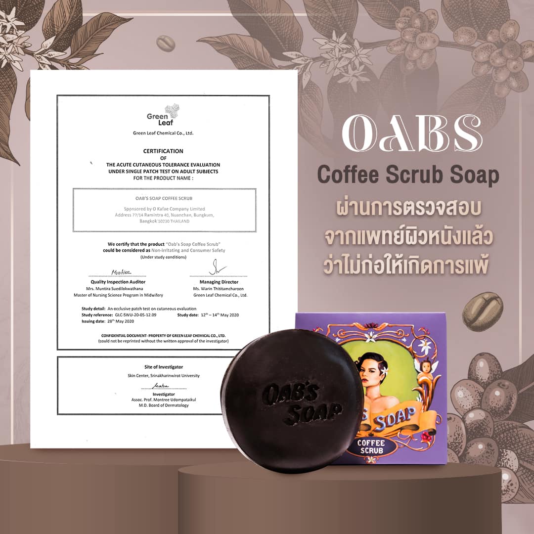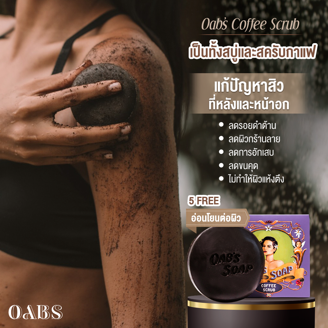 ขอแนะนำ oab's soap coffee scrub สบู่สครับกาแฟ โอปโซพ สบู่และสครับกาแฟในก้อนเดียว สำหรับใช้ทำความสะอาดผิวกาย อุดมไปด้วยส่วนผสมจากธรรมชาติ เเละได้รับการรับรองจากแพทย์ผิวหนังว่าไม่ก่อให้เกิดการแพ้ ขัดสะใจเนียนใสตั้งแต่ครั้งแรกด้วยสบู่และสครับกาแฟในก้อนเดียว จากโอปโซพ ช่วยผลัดเซลล์ผิวเก่า ลดรอยดำด้าน ทำให้ผิวเนียนนุ่ม แลดูกระจ่างใส