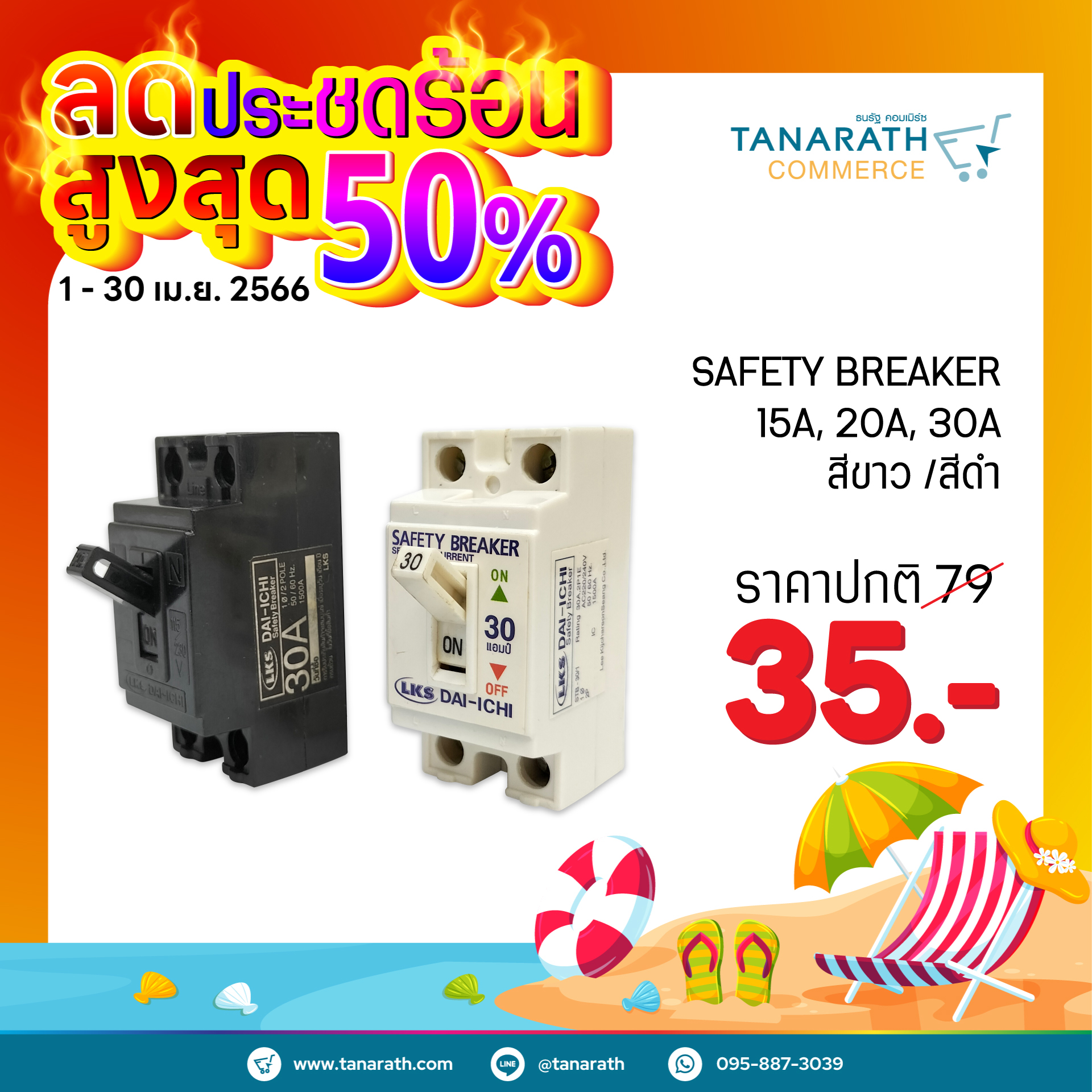 SAFETY BREAKER 15A, 20A, 30A āļŠāļĩāļāļēāļ§ /āļŠāļĩāļāļģ