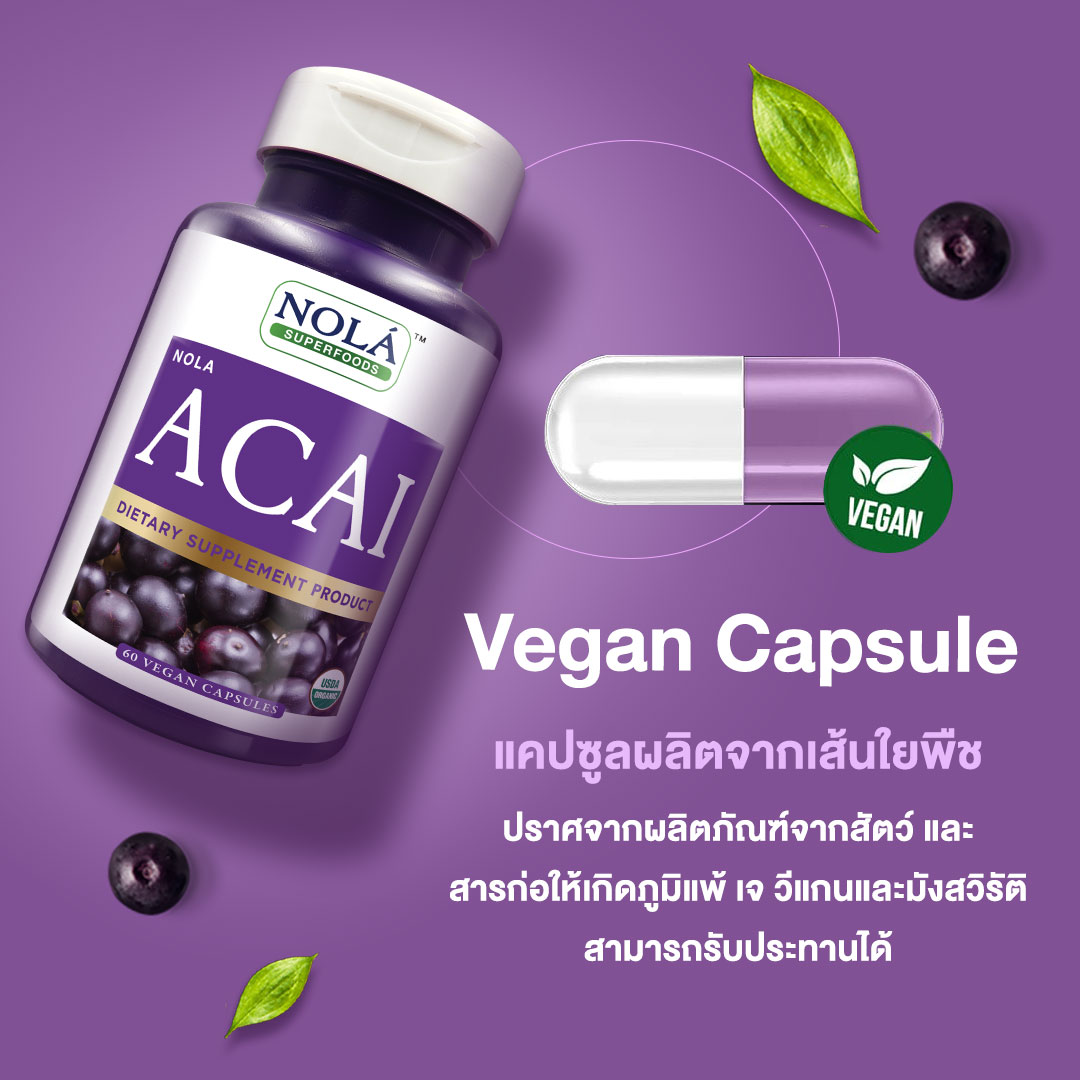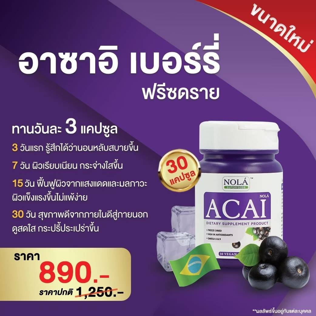 โนล่า อาซาอิ เบอร์รี่ : ซุปเปอร์ฟู้ดส์จากป่าแอมะซอนที่มีสารต้านอนุมูลอิสระสูงเป็นลำดับต้นๆของโลก แอนโทไซยานินที่มีอยู่ในอาซาอิ เบอร์รี่ มีบทบาทสำคัญในการป้องกันการเสื่อมสลายของเซลล์ สามารถต่อต้านอนุมูลอิสสระที่เป็นต้นเหตุของริ้วรอยแก่ก่อนวัย